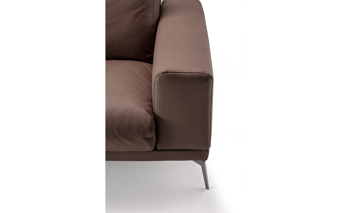 Il design ben definito è ammorbidito dall’imbottitura in piuma, che ne sottolinea il comfort e la sensazione di benessere.